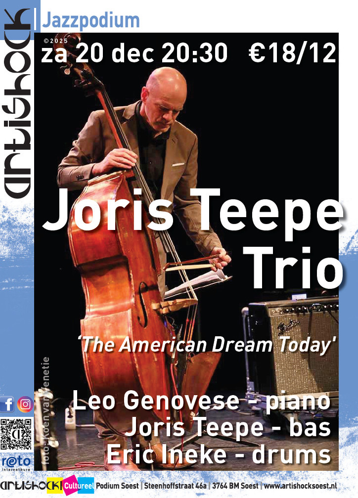 Op de cd ‘The American Dream Today’ speelt een drietal blazers mee dus is het niet aannemelijk dat we die stukken bij Artishock gaan horen. De slagwerker van het trio, Eric Ineke, is een slagwerkveteraan van formaat. Hij speelde met talloze Amerikaanse solisten zoals Dexter Gordon, Dizzy Gillespie, Johnny Griffin en George Coleman. Misschien moeten we wel spreken van een supertrio met Joris Teepe, Leo Genovese en Eric Ineke.