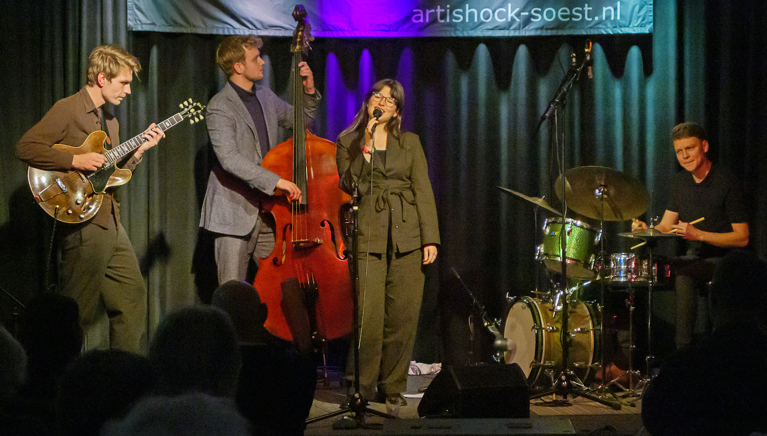 Het Idema/Serierse Quartet speelde op 18 oktober bij Artishock stukken van hun onlangs uitgekomen derde cd: ‘Serenade in Blue’. Nu eens geen eigen werk maar standards die een grotere bekendheid verdienen. We hoorden dertien composities. Dertien in een dozijn? Absoluut niet! Alle dertien goed eerder! Een compilatie van prachtige nummers uitgevoerd door een band die in topvorm verkeerde. Al bij het openingsnummer ‘Beautiful Moons Ago’ van Nat King Cole hoorden we dat het goed zat. De muziek ademt, golft op ons af. De muzikanten musiceren onnadrukkelijk, ingehouden waardoor de muziek nog meer lading kreeg.