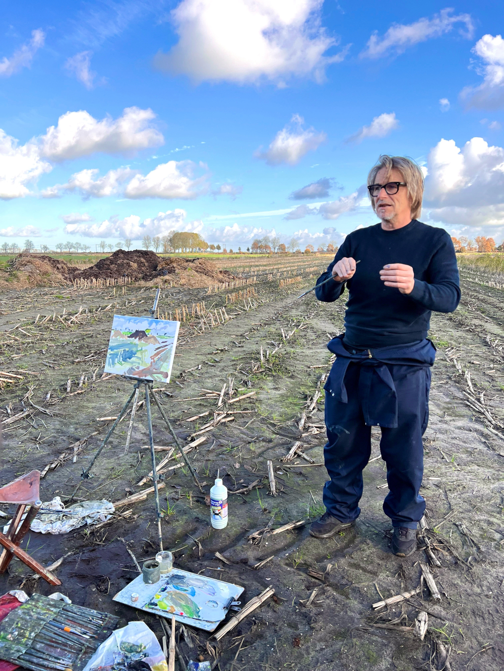 Artishock tekenclub schildert met kunstenaar JIM HARRIS in Soester polder.