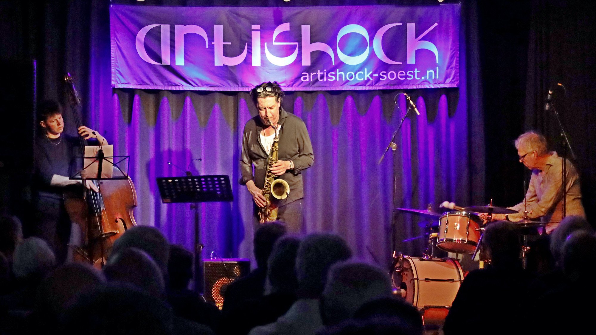 De zaal van Artishock zat bij het optreden van het Yuri Honing Trio op 21 februari afgeladen vol. Mooi! Yuri Honing is een publiekstrekker.